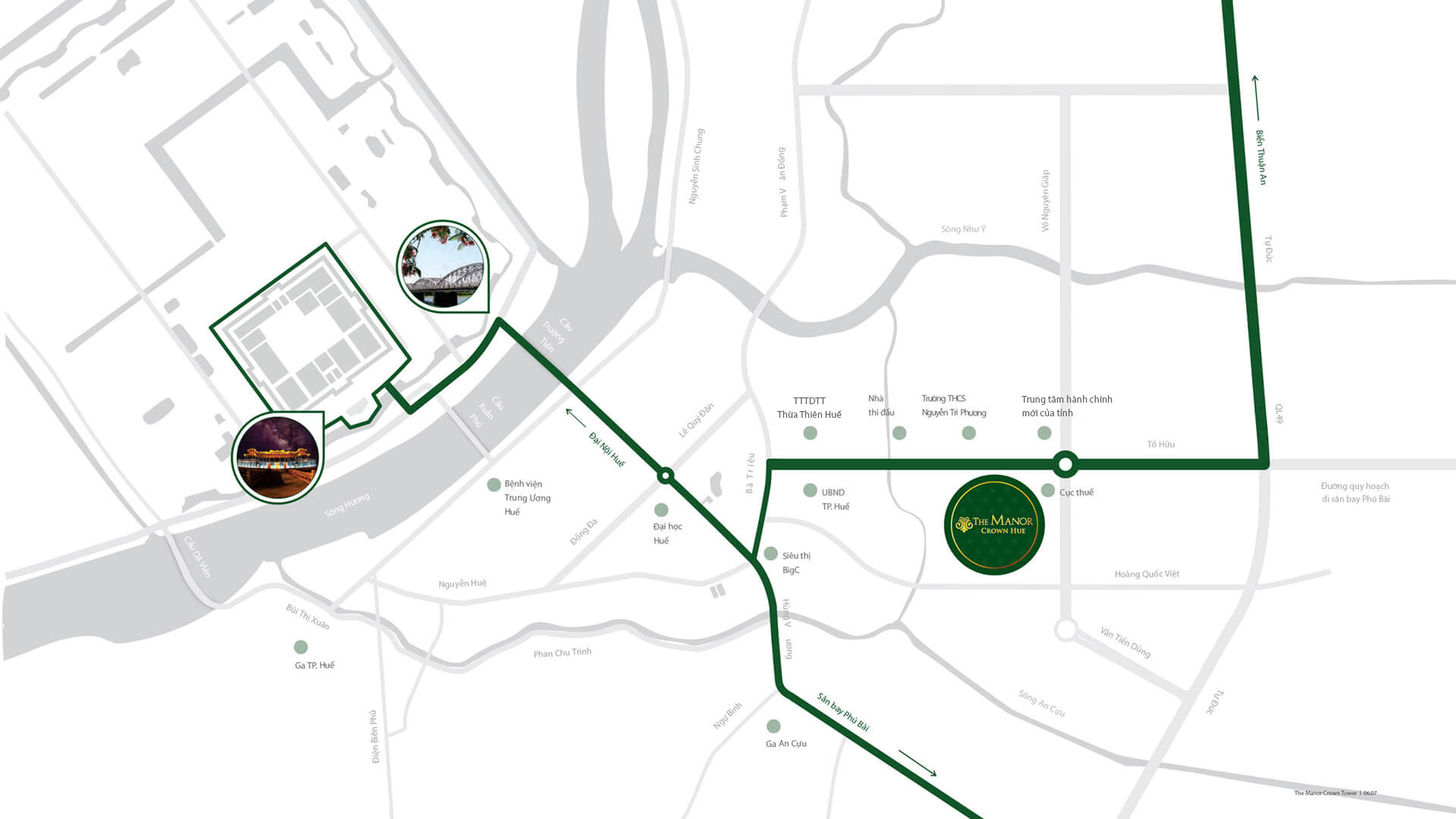 Nằm trên đại lộ Tố Hữu rộng 60 m, thuộc Đô thị mới An Vân Dương, Khu đô thị The Manor Crown Huế sở hữu hàng loạt điểm “cộng”, vô cùng thuận tiện cho các nhu cầu về an ninh, giao thông, du lịch hay vui chơi giải trí của bạn.
